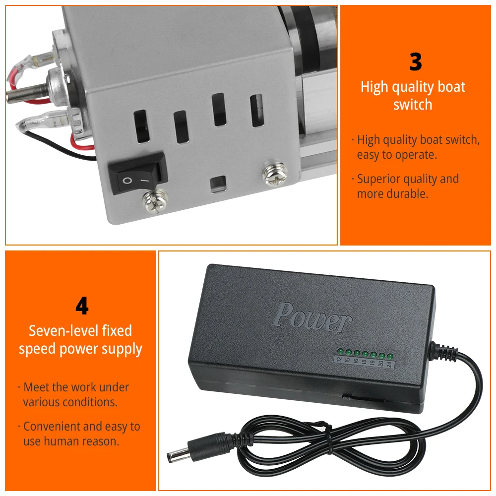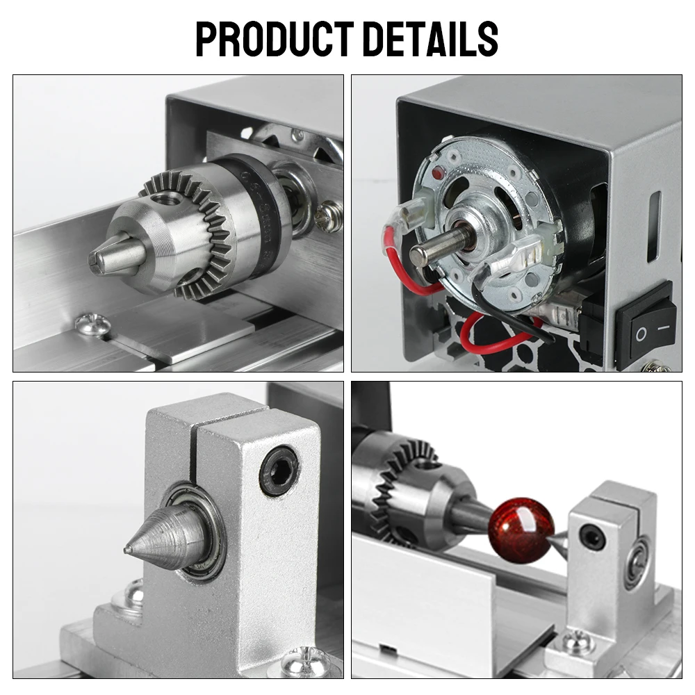 This mini wood lathe machine is designed for small-scale woodworking projects. It is ideal for crafting Buddha beads, pearls, and other miniature items. The compact size makes it perfect for hobbyists and DIY creators. It operates on a 12–24V power range for flexible use. The machine provides stable rotation for smooth shaping and polishing. Its sturdy build helps maintain precision during detailed work. The lathe can handle grinding, sanding, carving, and finishing tasks. It is suitable for beginners as well as experienced crafters. The lightweight design allows for easy placement on any workbench. This tool enhances efficiency when working with small wooden pieces. It delivers consistent performance for fine craftsmanship. Overall, it is a practical choice for detailed woodworking and bead-making projects.